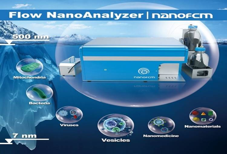 颜晓梅教授课题组首创性地结合瑞利散射和鞘流单分子荧光检测技术,研发成功具有自主知识产权的纳米流式检测技术(nano-flow cytometry, nFCM),将纳米金颗粒、二氧化硅纳米颗粒、病毒、外泌体的单颗粒散射检测下限分别推进到前所未有的7 nm、24 nm、27 nm和40 nm,较传统流式细胞仪的散射检测灵敏度提升4-6个数量级,可对纳米颗粒悬液进行粒径快速表征,分辨率媲美透射电镜;荧光检测灵敏度较传统流式细胞仪提高2-3个数量级,实现了单个藻红蛋白荧光信号的高信噪比检测。nFCM以每分钟高达10,000个颗粒的速率对单个纳米颗粒的散射和多色荧光信号进行同时检测,仅需2-3分钟即可实现纳米颗粒粒径及其分布、颗粒浓度和多种生物化学性状的多参数定量表征。nFCM覆盖了传统流式细胞仪200 nm以下粒径检测的盲区,囊括外泌体、病毒、细菌、亚细胞结构、纳米药物等,填补了国际空白,在生命科学、生物医药、能源材料、食品安全、环境监测等领域具有重要的应用前景和市场价值。