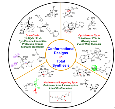 构象是有机化学中最基本的概念之一,用来描述分子的微观形态,其对分子的物理性质、化学反应性和生物活性有着显著的影响。自上个世纪80年代,构象分析在维生素B12和红霉素等复杂天然产物的全合成中发挥了重大的作用,其重要性已被普遍认知。在已发表的成果中,构象分析多作为解释实验结果的工具,较少能主动通过构象设计控制构象偏好来用于指导复杂分子全合成。