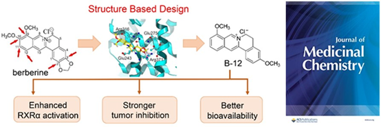 福建省化学生物学重点实验室张延东教授课题组与医学院胡天惠教授课题组合作在国际药物化学顶级期刊《Journal of Medicinal Chemistry》发表研究论文:“Structure-activity relationship study enables the discovery of a novel berberine analogue as RXRα activator to inhibit colon cancer”(DOI:10.1021/acs.jmedchem.0c00088),针对黄连素与视黄醇X受体(RXRa)的结合模式展开构效关系研究,发现了比黄连素活性更好、生物利用度更高的靶向药物先导物。