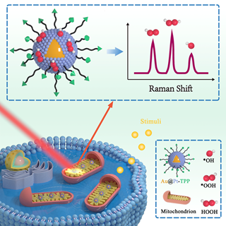 活性氧物种(ROS)是一类具有强反应活性的含氧物质(包括•O2–、H2O2、•OH和1O2等)。细胞线粒体中ROS的过度产生或紊乱会破坏细胞氧化还原平衡,引起细胞氧化应激,影响正常的生理过程,甚至导致多种疾病。为了深入理解多种ROS在生物学过程中扮演的角色和发挥的作用,需要发展能够同时检测并准确区分多种ROS的方法。但是,目前活细胞水平检测ROS的方法,包括荧光法、电化学法和拉曼光谱法等,都难以满足上述要求。因此,发展能够同时检测和区分活细胞中多种不同ROS并原位监测ROS动态变化的方法是一项重大的挑战,也是亟待解决的重要问题。