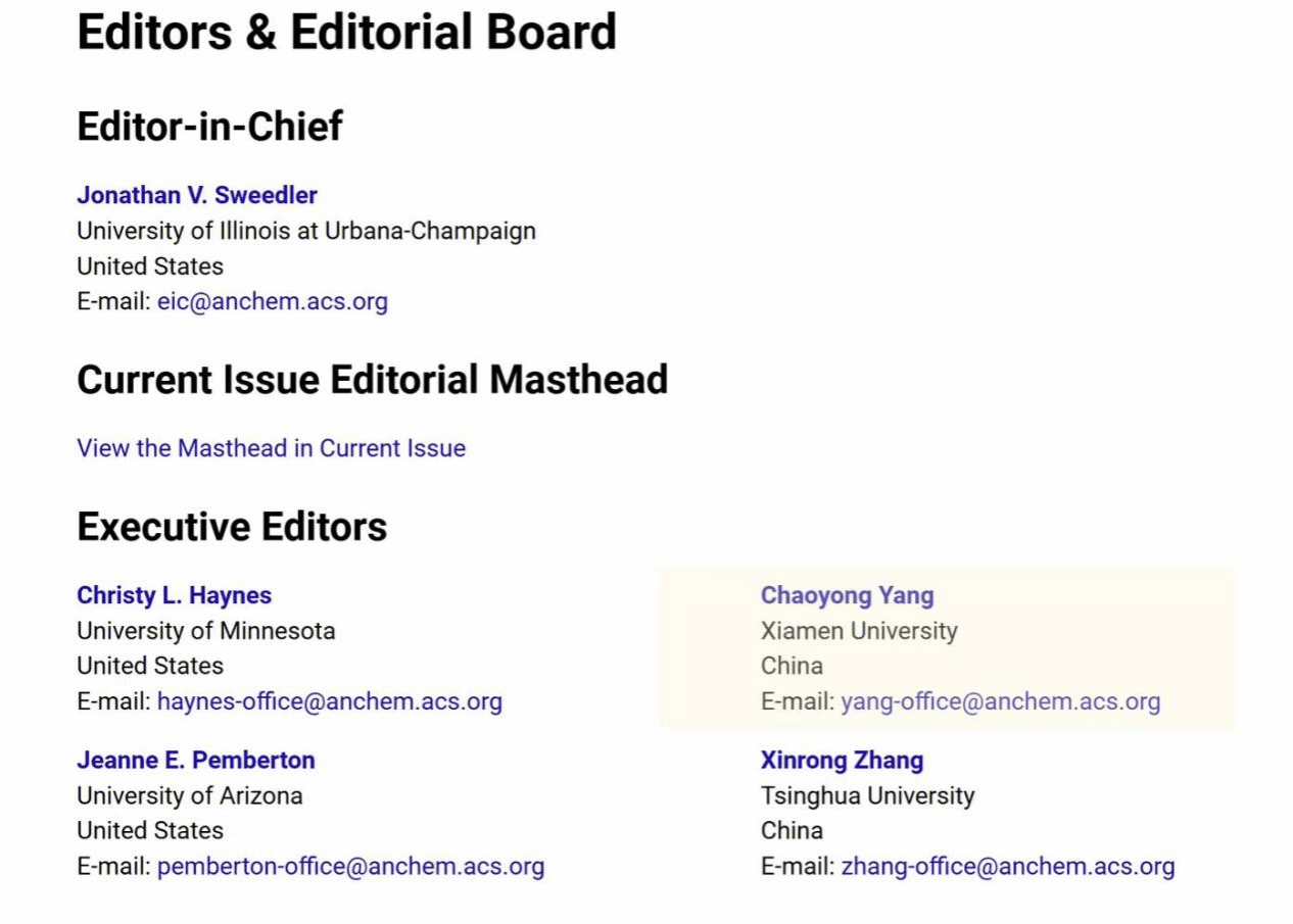 来源:https://pubs.acs.org/page/ancham/editors.html