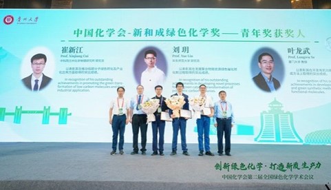 第二届全国绿色化学学术会议定于2025年9月5日-8日在贵阳举办。会上,中国化学会绿色化学专业委员会举行了2025年中国化学会-新和成绿色化学奖颁奖仪式并颁发证书,福建省化学生物学重点实验室叶龙武教授荣获首届中国化学会-新和成绿色化学青年奖,以表彰其在开发有机功能分子高效、绿色合成方法上取得的重要贡献。